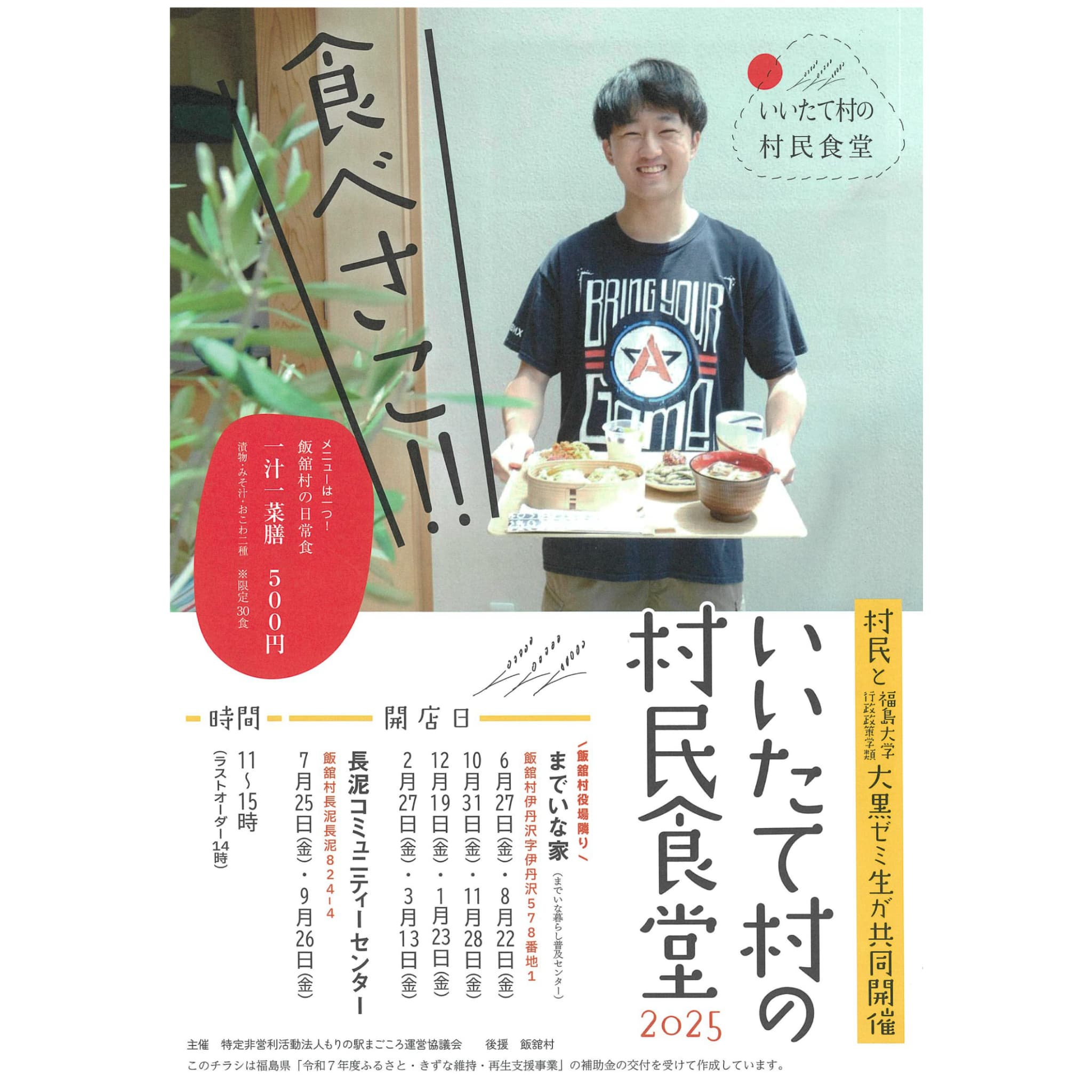 「いいたて村の村民食堂」は、村民と福島大学行政政策学類大黒ゼミ生が一緒になって、飯舘村の「食」の伝統を守りながら、新しいことにチャレンジする食堂です。