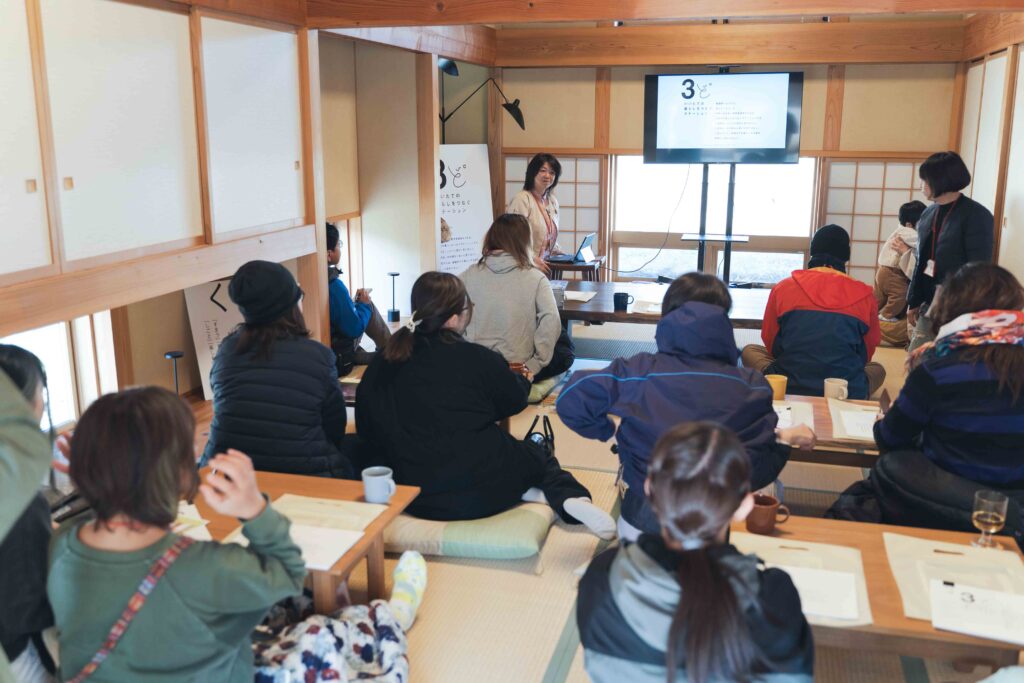 かつて農産物直売所だった『もりの駅まごころ』は、原発事故による休止を経て2年前にリニューアルオープン。自身も20年前に飯舘村へ移住した鮎川さんは「(戦争や災害などの)有事に備えるには田舎暮らしの方がいいかも。私の住んでいるところには井戸があり、太陽光発電もできて、暖房にはマキが使える。最近はきな臭い世の中。2地域居住でいいから考えてみて」と、村の「安全・安心」をアピールしました。