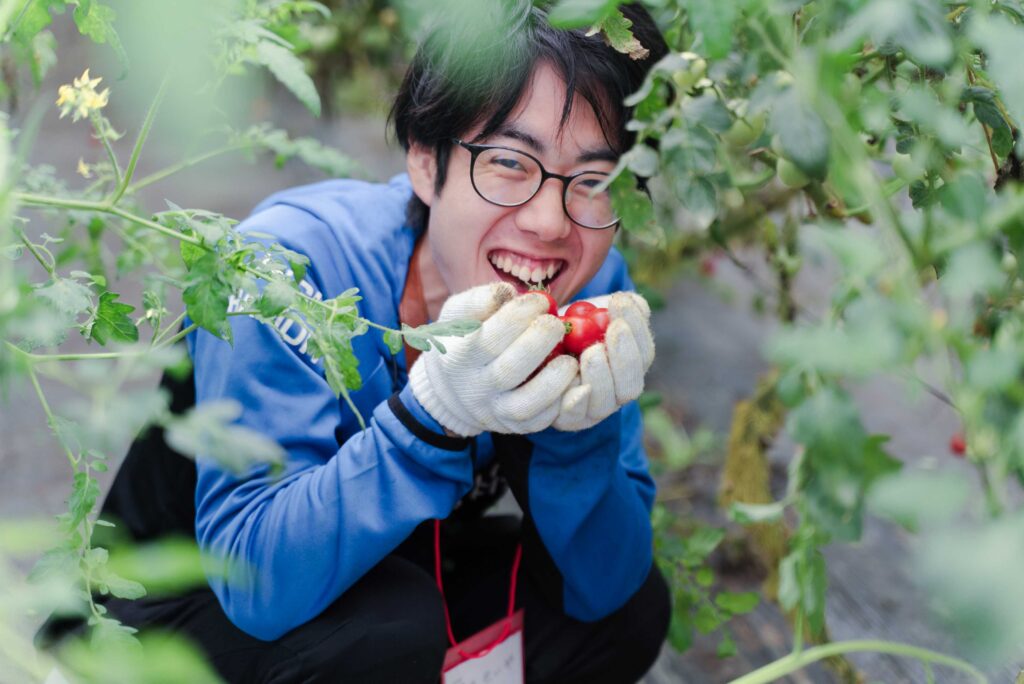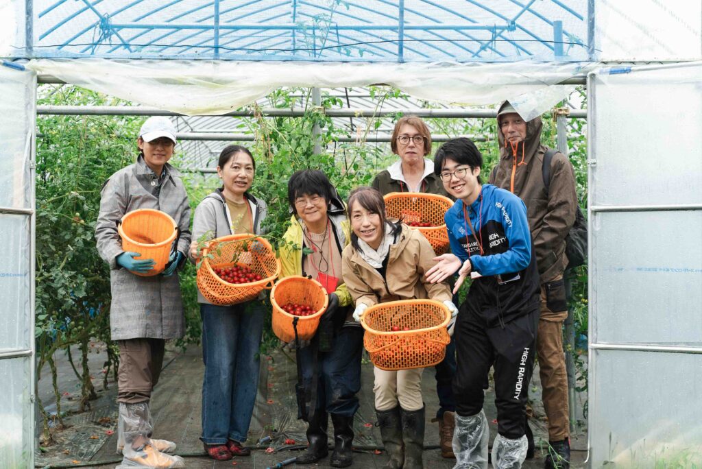 参加メンバーもハウスでのトマト収穫を体験しつつ、トマトの生育度合いや村での暮らし、事業をするハードルなどについて聞くなど、充実した時間となりました。