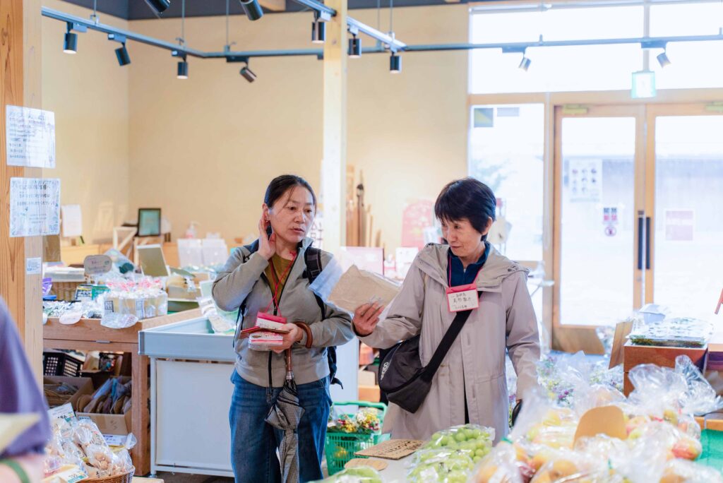 今回のミチシル旅では、「村でステキ!」と感じたものを各参加メンバーが手提げかごに集めて最後に発表する」というミッションがありました。コンビニも併設されている『いいたて村の道の駅までい館』に立ち寄り、参加メンバーはそれぞれに、特産品や農産物など、お土産になるようなものも収集。