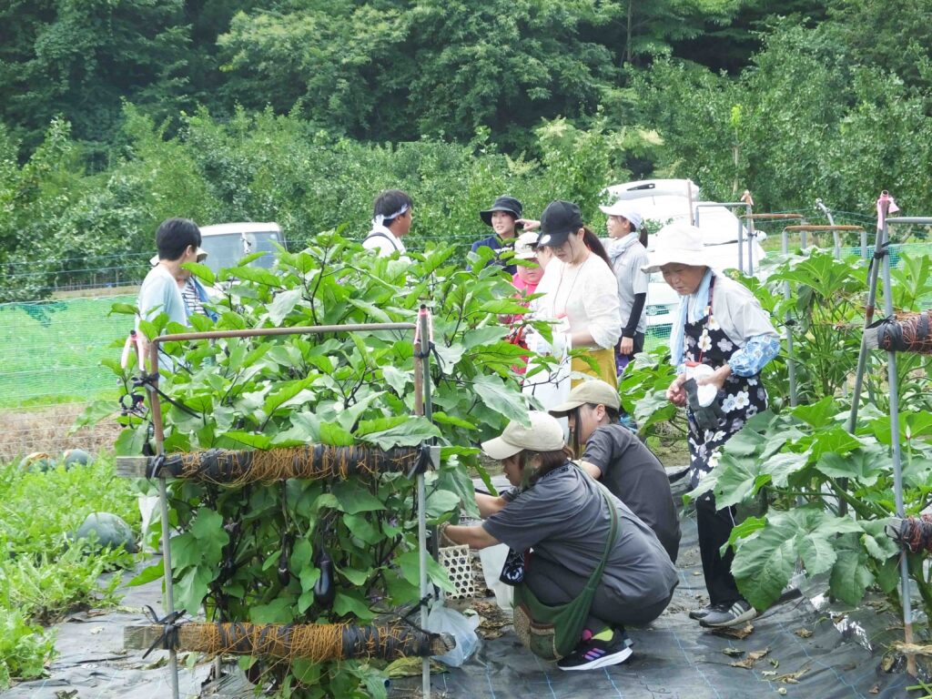 続けて向かったのは、村の南側「上飯樋(かみいいとい)地区」。赤石澤 傭(あかいしざわ すなお)さんの畑で行われている『わくわく農業体験塾』のもとへお邪魔しました。
