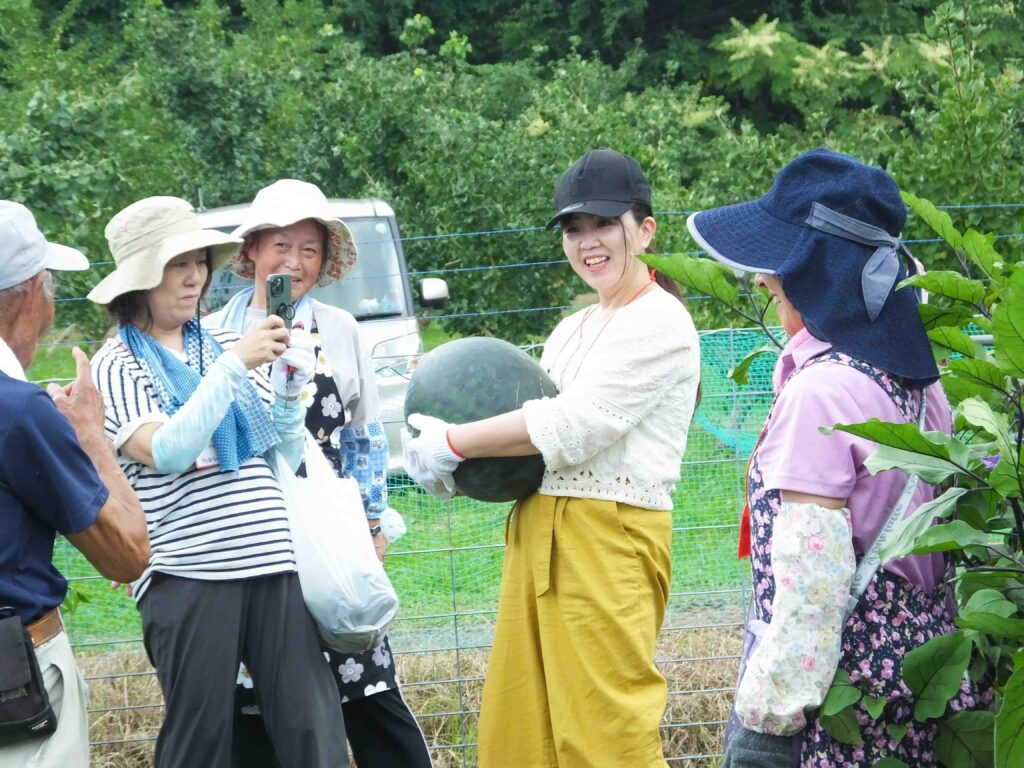 最後に、参加者の入刀で黒スイカを割って和気あいあいとみんなでいただきました。資源や人の数が限られた環境の山あいに位置する、この村に根付いてきたまさに「ひとつのものをみんなで分け合う」中山間地域らしい光景でした。