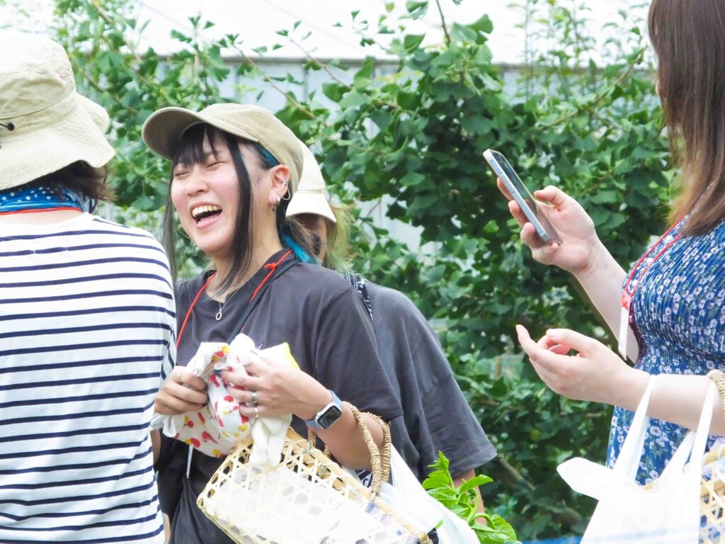 畑で体験できた「住民との触れ合い」でした。「これはまだ(収穫するには)早いね」「これはどうやって食べるんですか?」など、誰が促すまでもなく村民が参加者にまるで伴走者のように寄り添っての自然なやりとりが生まれる雰囲気に。実際に「オクラってこうやって実がなるんですね!」「こんなに柔らかくて甘いアスパラ、初めて食べた!」といった感動の声も飛び交いました。