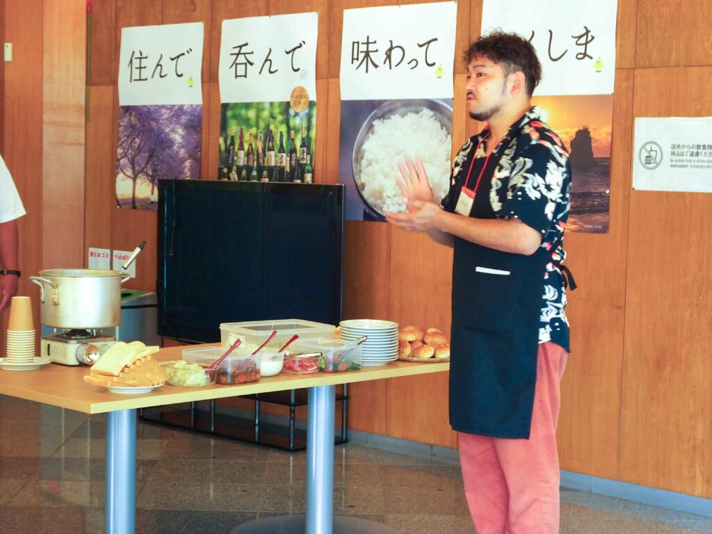 翌朝は村で田舎レストラン『La Kasse (ラ・カッセ)』を運営するオーナーシェフ、佐藤 雄紀さんによる出張モーニングビュッフェが登場。「生産と直結している環境だからこそ楽しめる『食べ方』や、時期によっていろいろな種類の食材が愉しめるという村の『魅力』や『豊かさ』を、料理を通じて伝えることで、来訪者やファンを増やしたい」と話す佐藤シェフ。