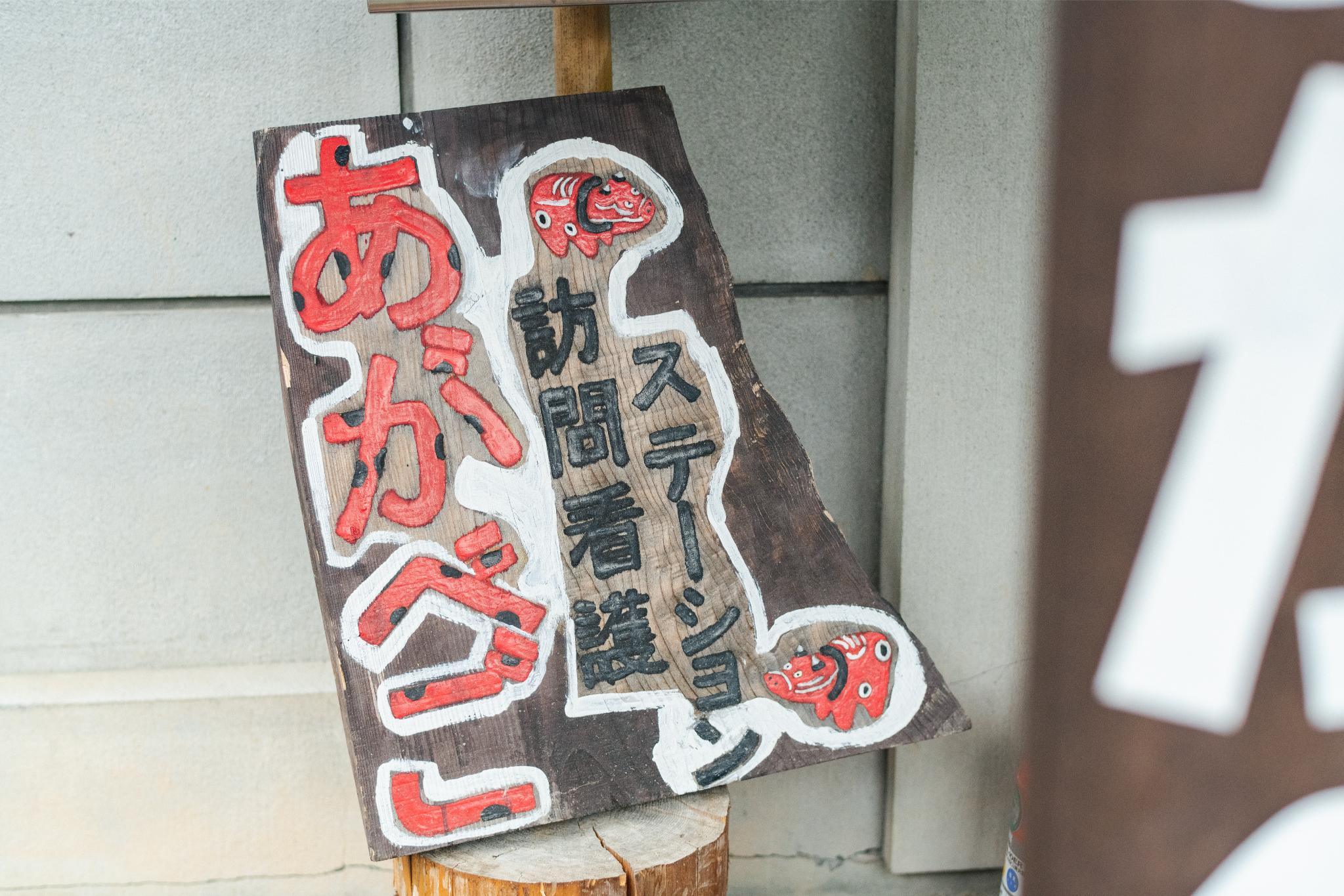 星野さんは、ギリシャ語「アガペー(無償の愛)」の意味を重ねて、事業所を「あがべご」と命名しました。看板のイラストは、星野さんの奥様が描いています。
