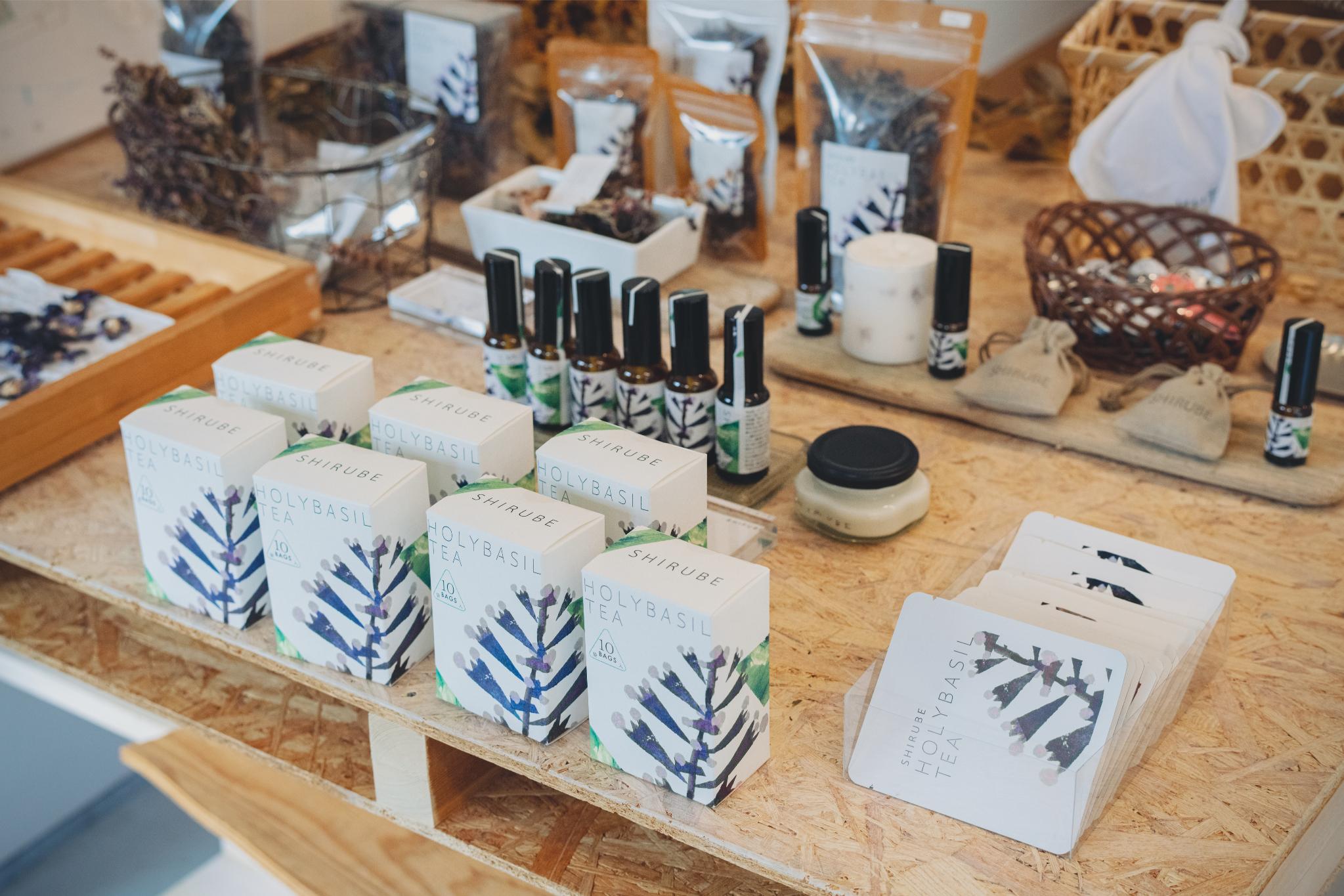 「SHIRUBE」の商品。村民の協力を得て生産しています