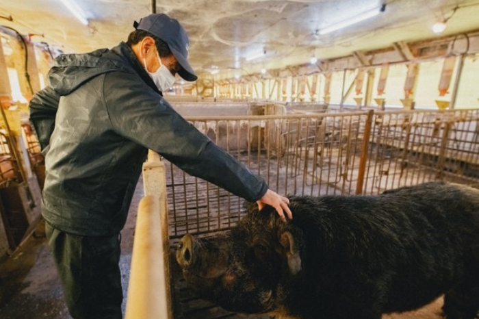 「いかに健康な豚をつくるか、手を抜かず大切に育てています」。この道一筋の大ベテランが、実直な仕事で愛情深く、洪宝豚の飼育に取り組みます。
