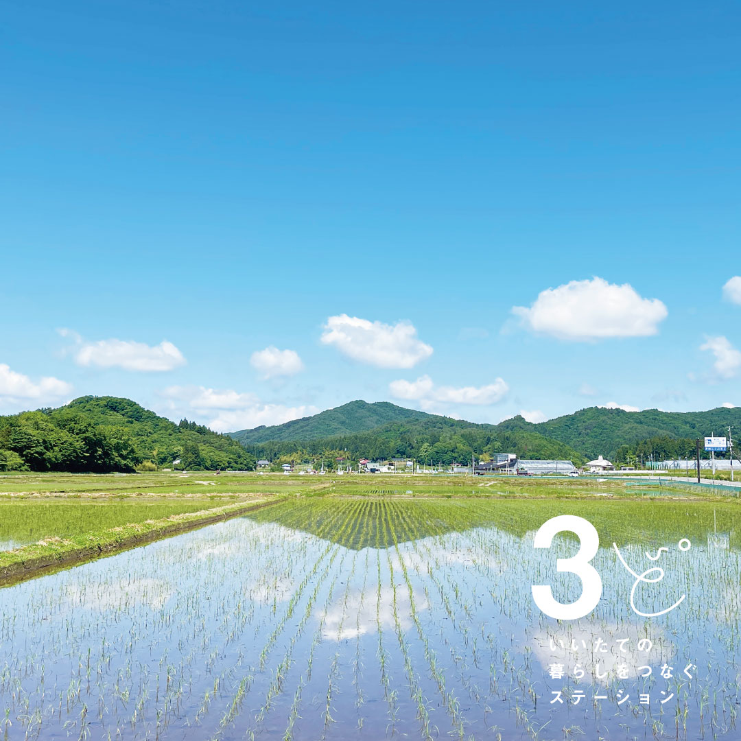 稲が育ち田が緑に染まれば見られなくなる、この季節だけの楽しい景色。ちなみに飯舘村の空色のバリエーションには無限の広がりがあって、毎日見上げていても、新たな出会いに驚かされます。